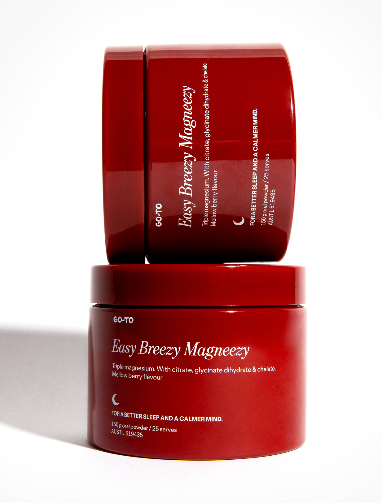 Cleverly formulated with three types of magnesium, Easy Breezy Magneezy is a delicious pre-bed ritual designed to help calm busy to-do-list brains and usher you into that Good, Good Sleep you deserve.
